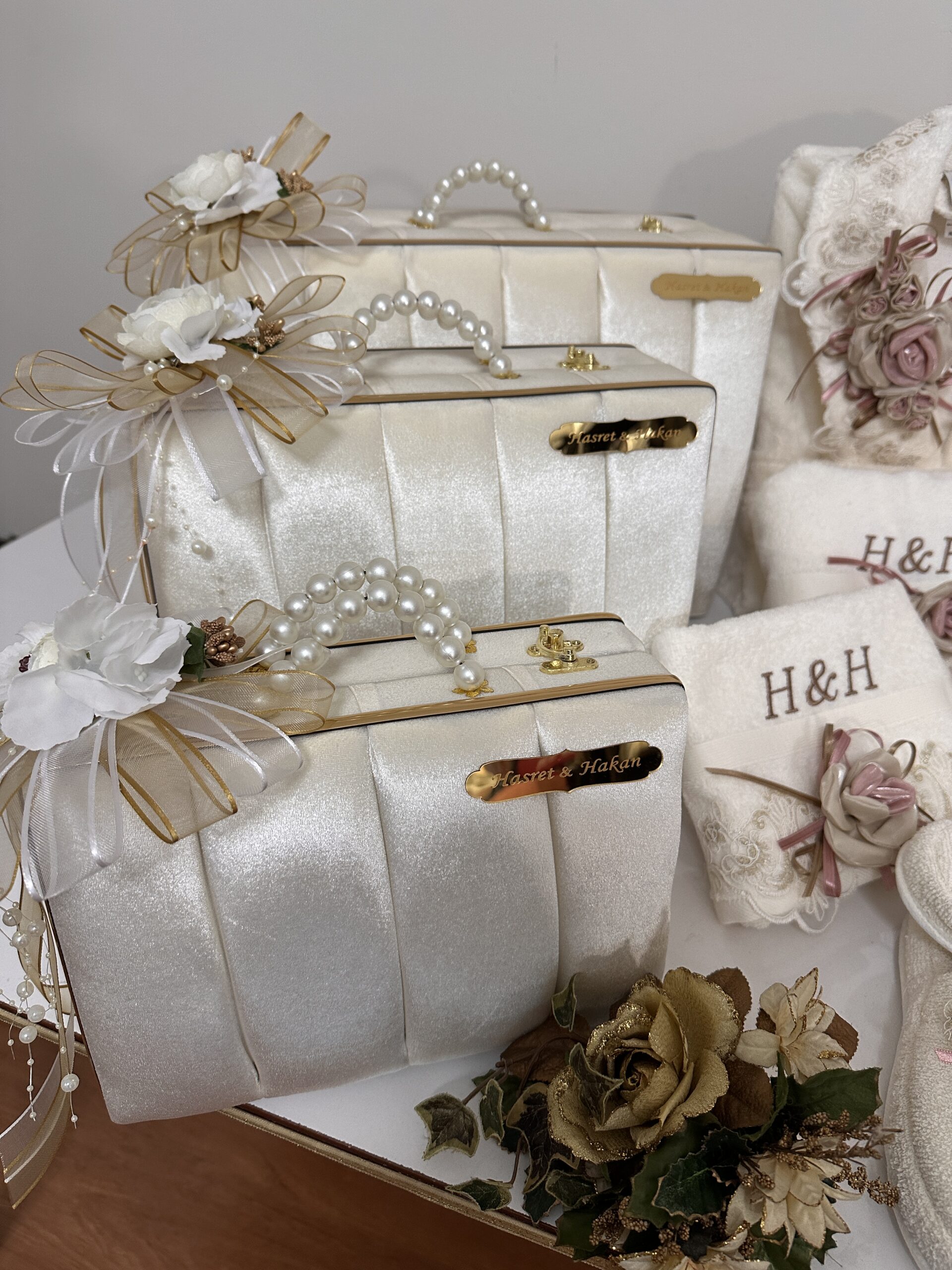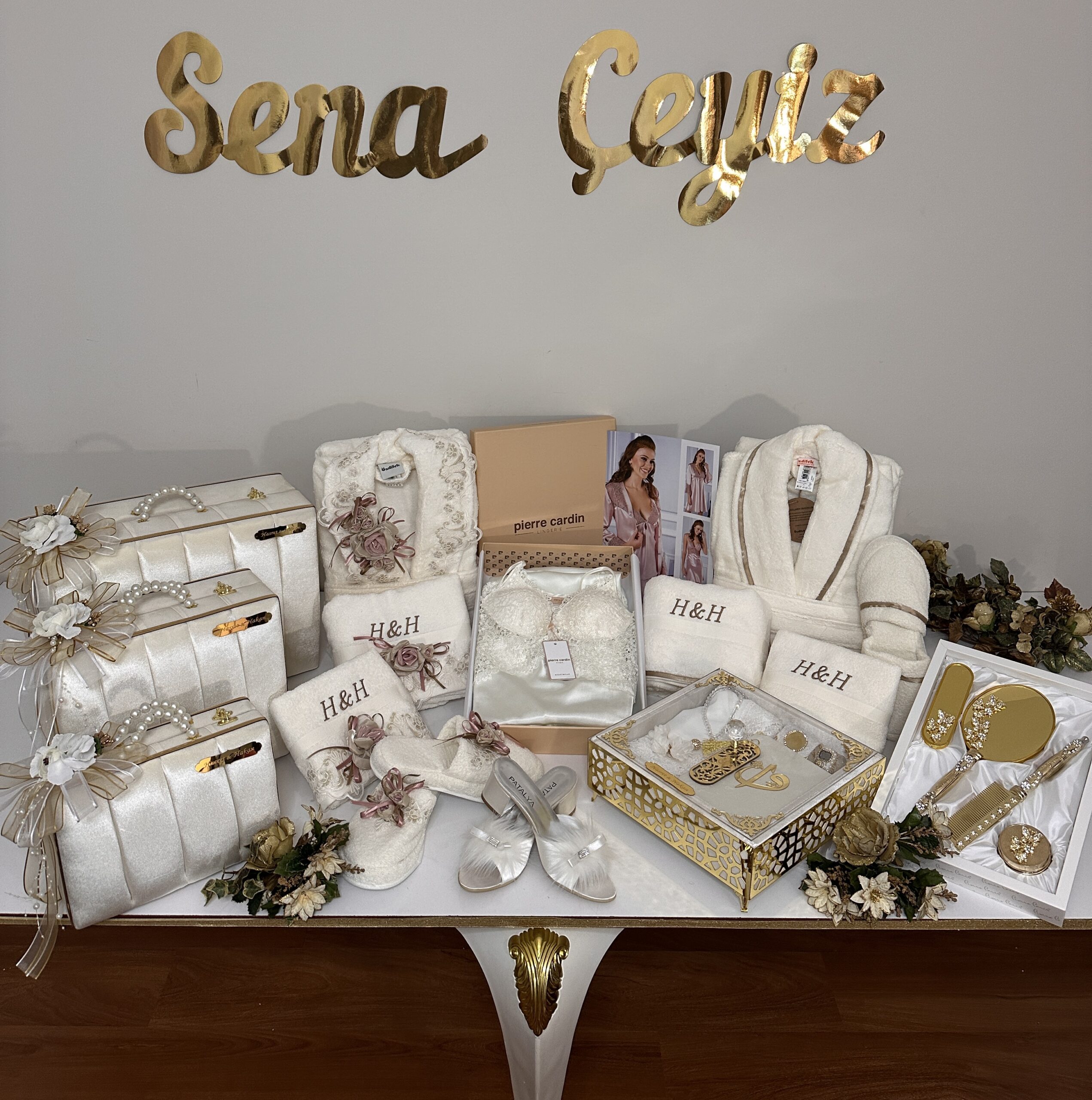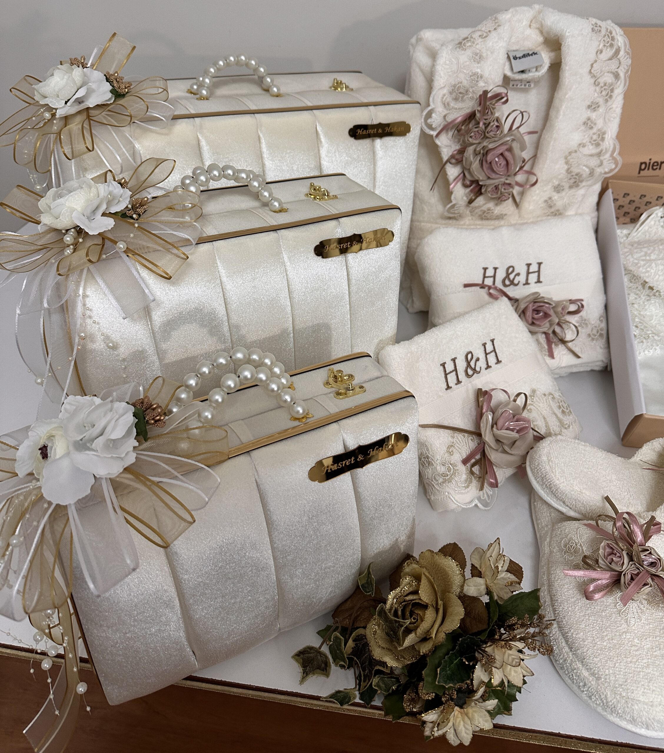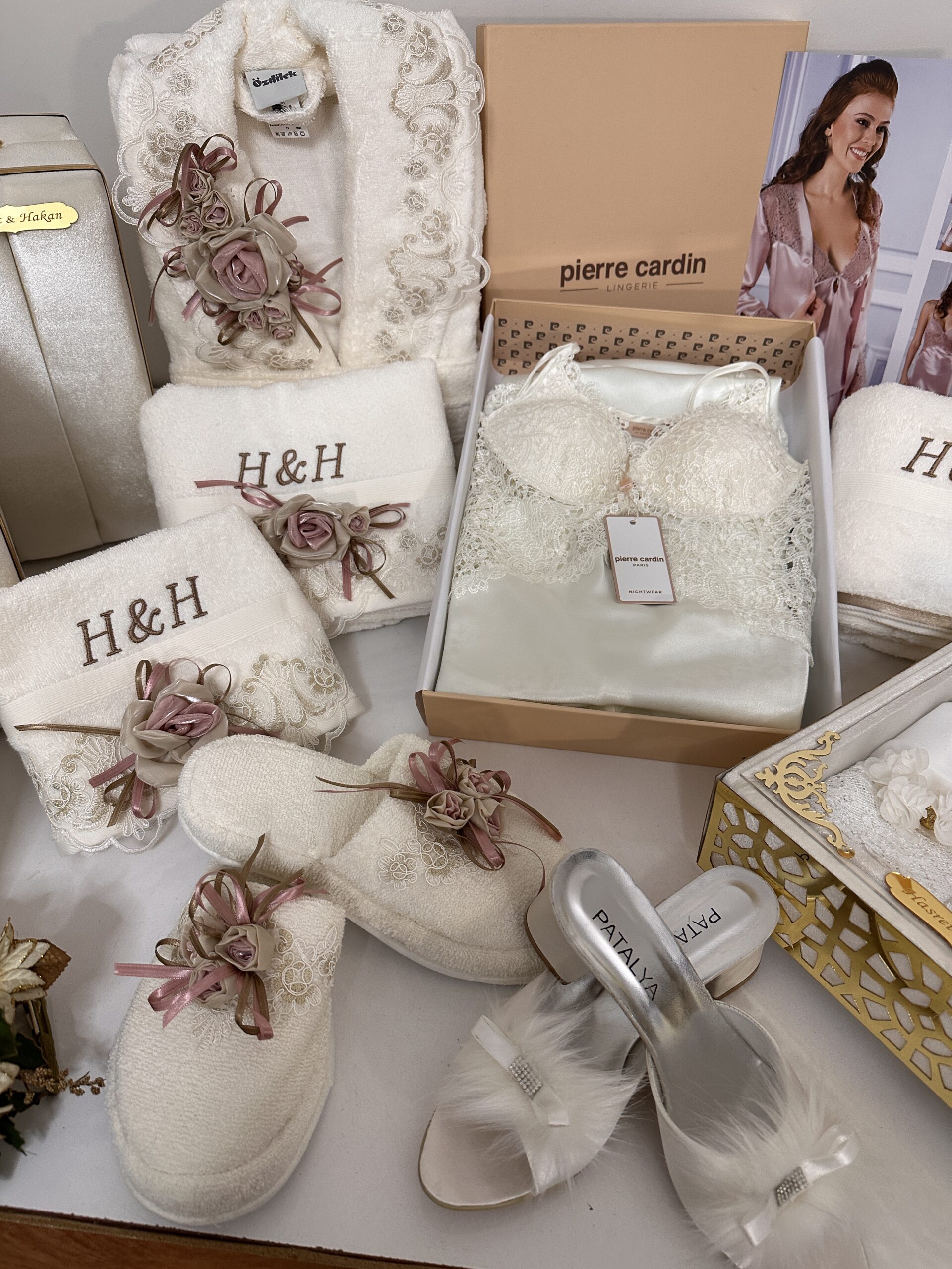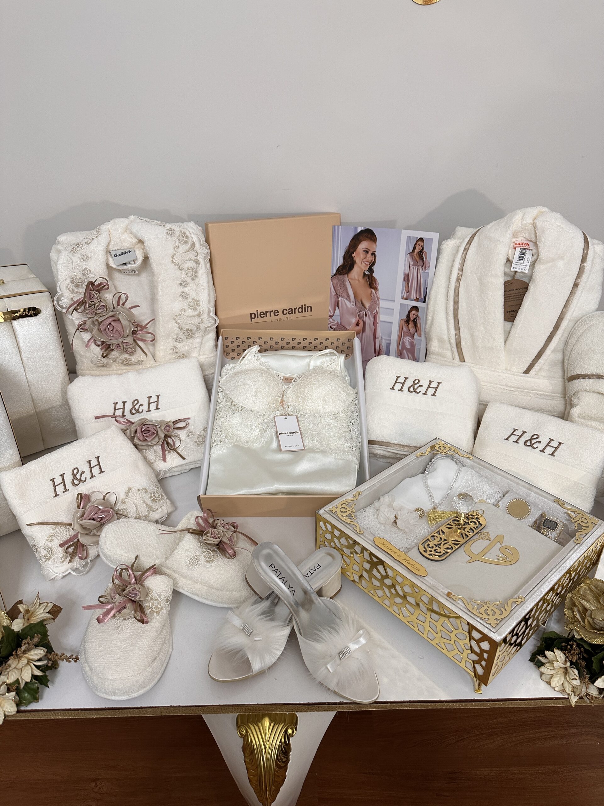 • Özdilek marka روب حمام عرايس مجموعة / بكج 8 قطع فخمة