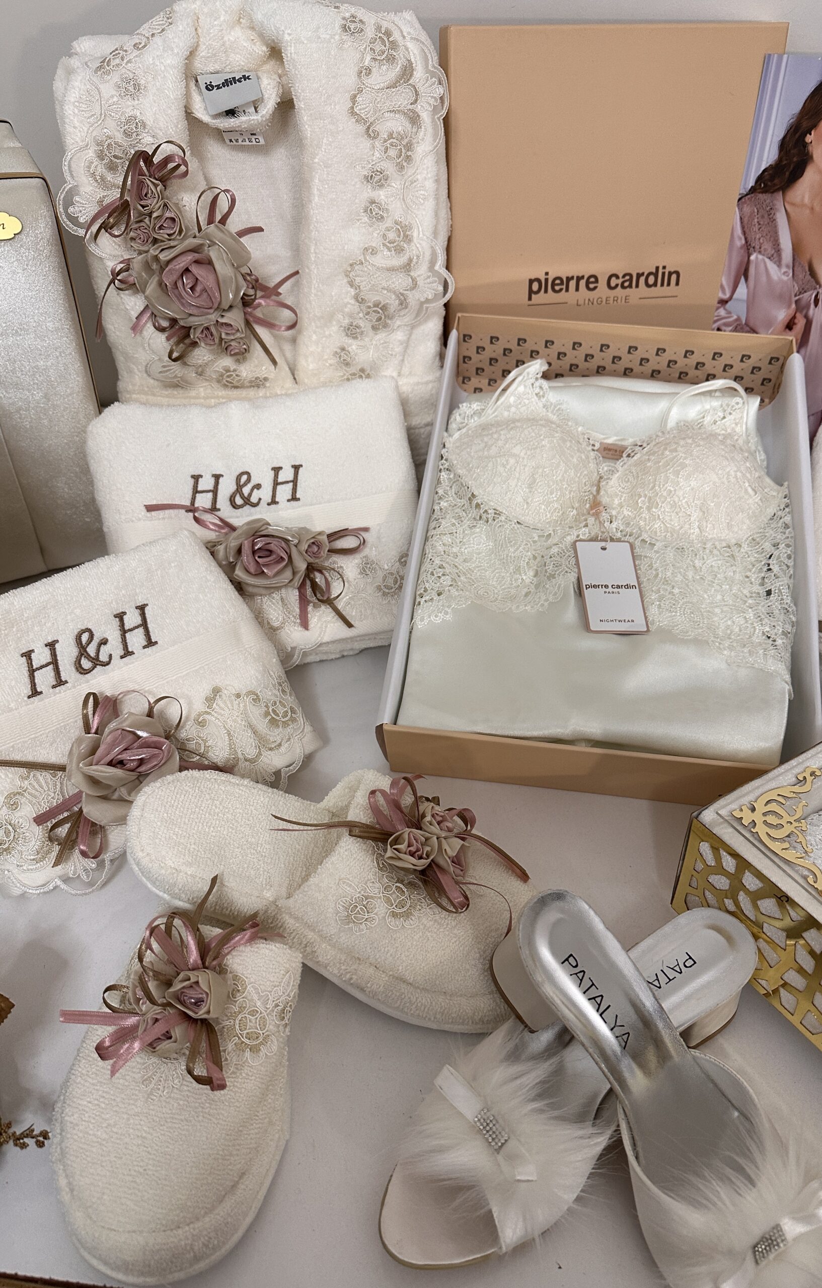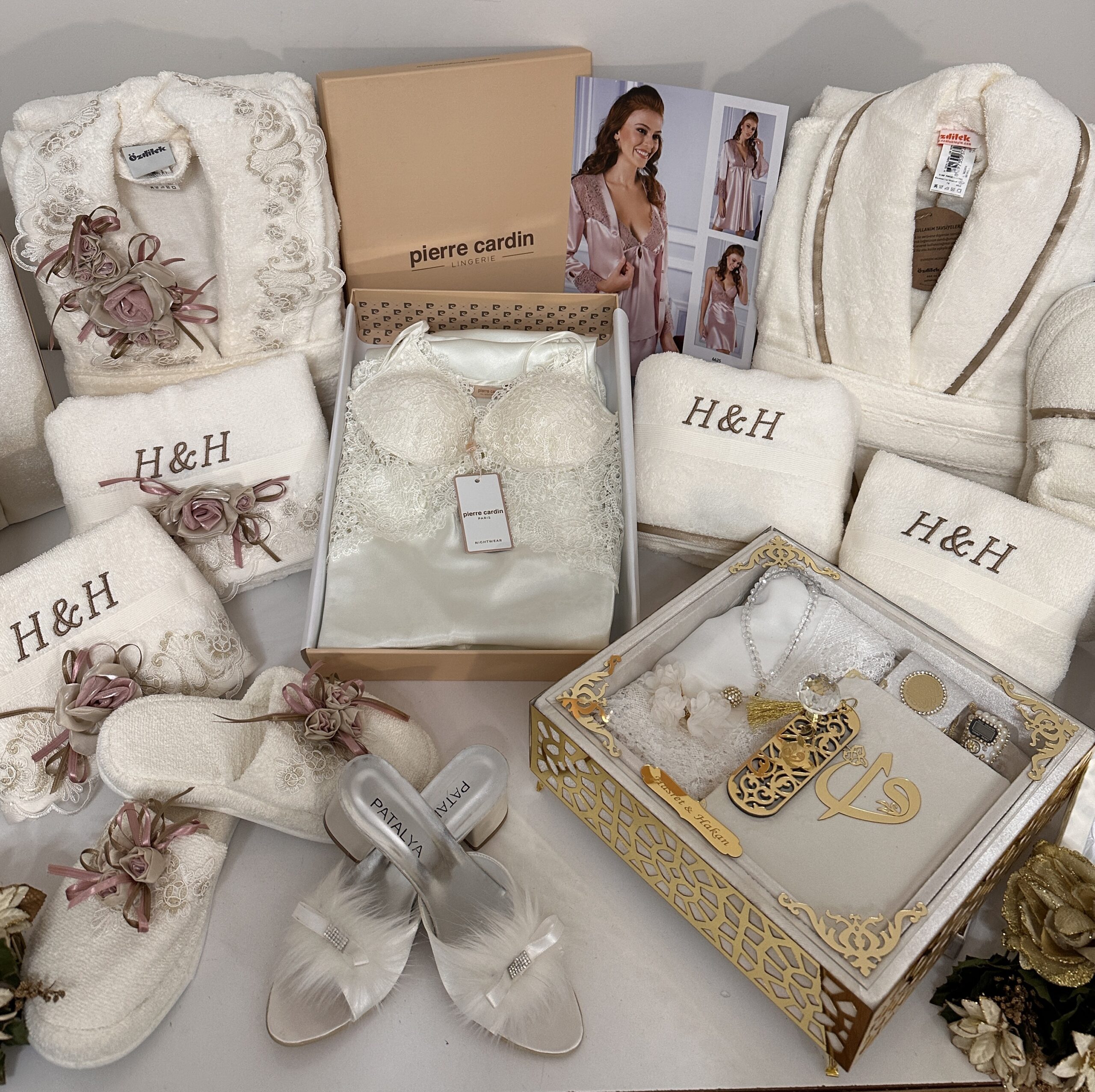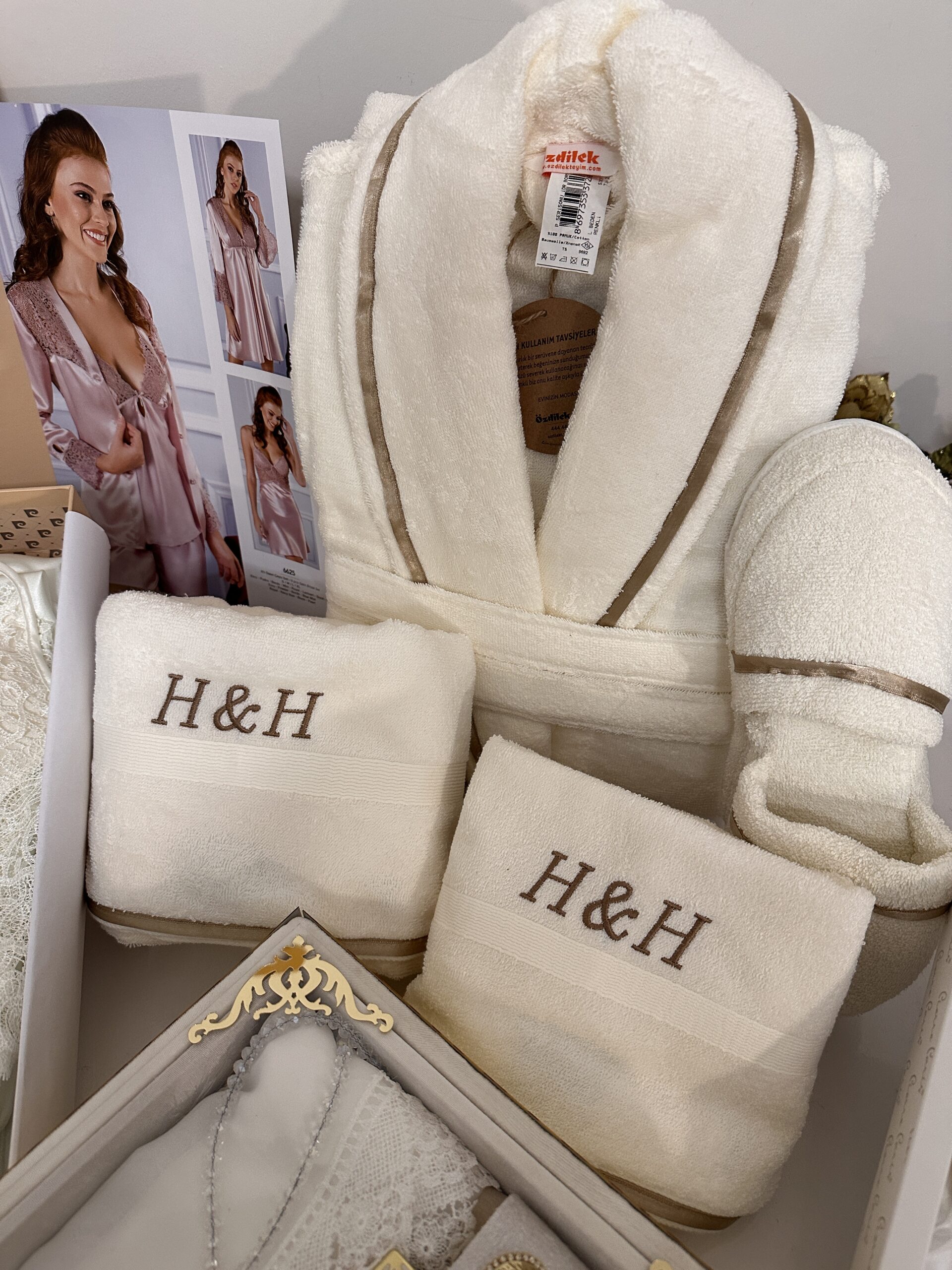 • Özdilek marka روب حمام عرايس مجموعة / بكج 8 قطع فخمة