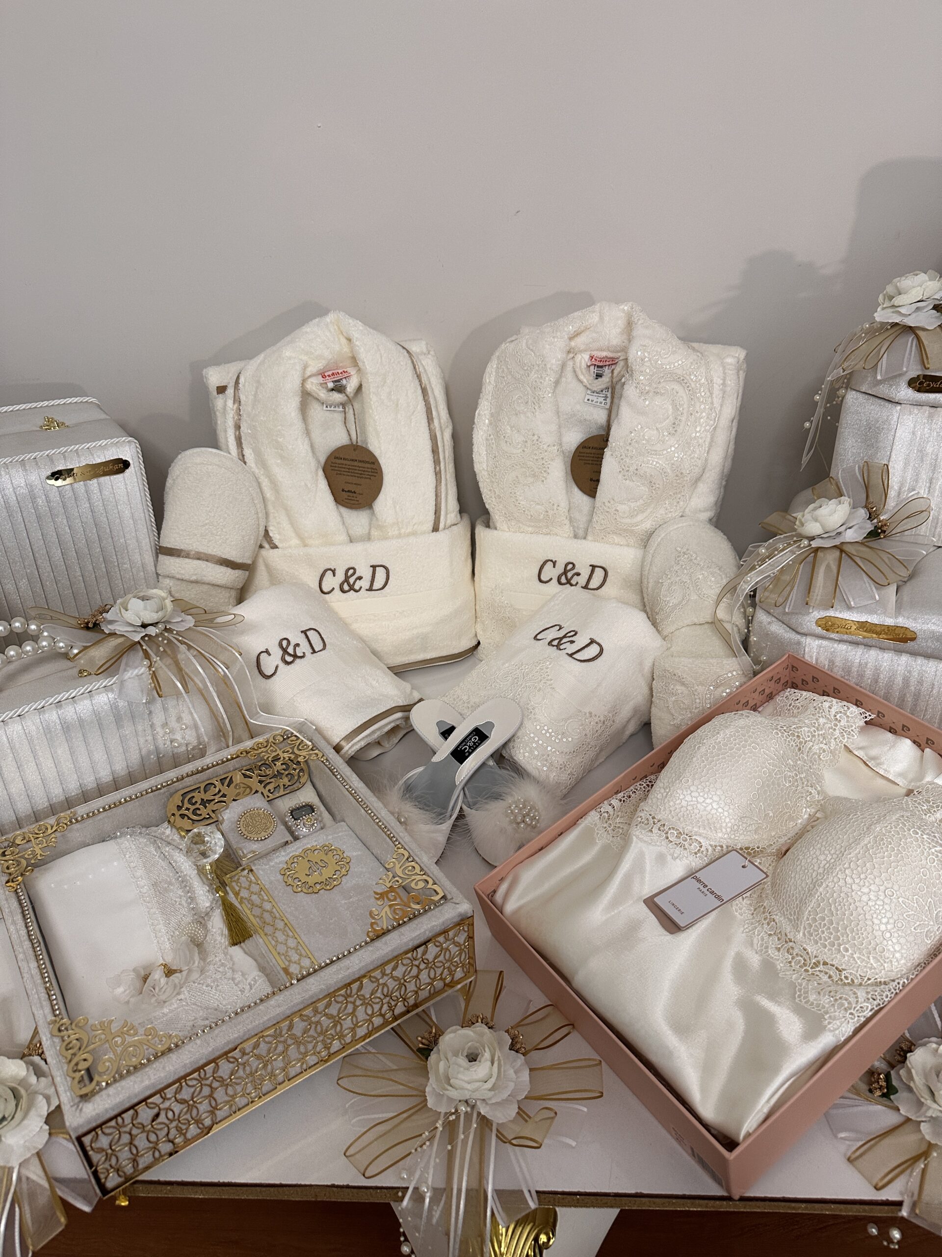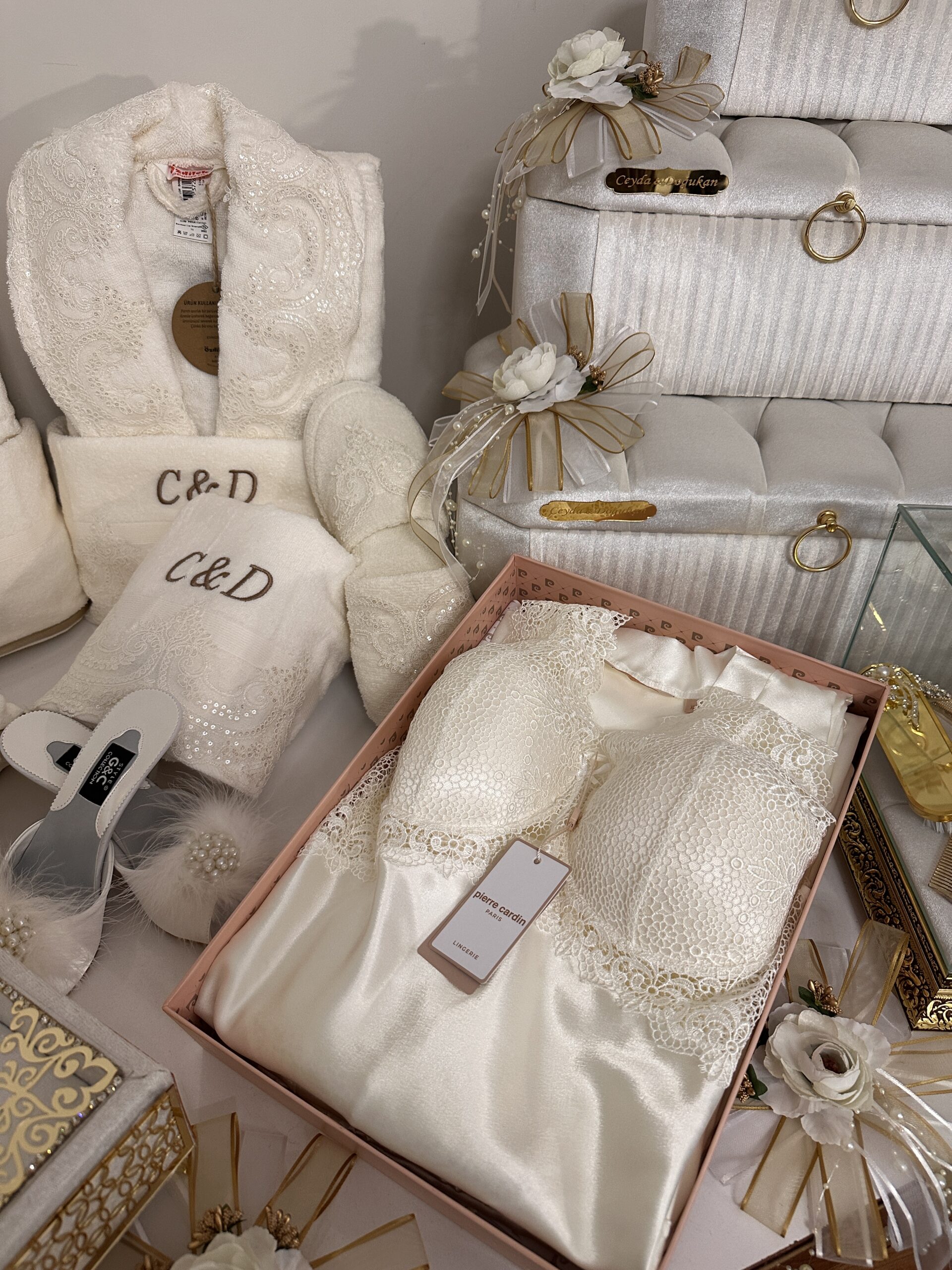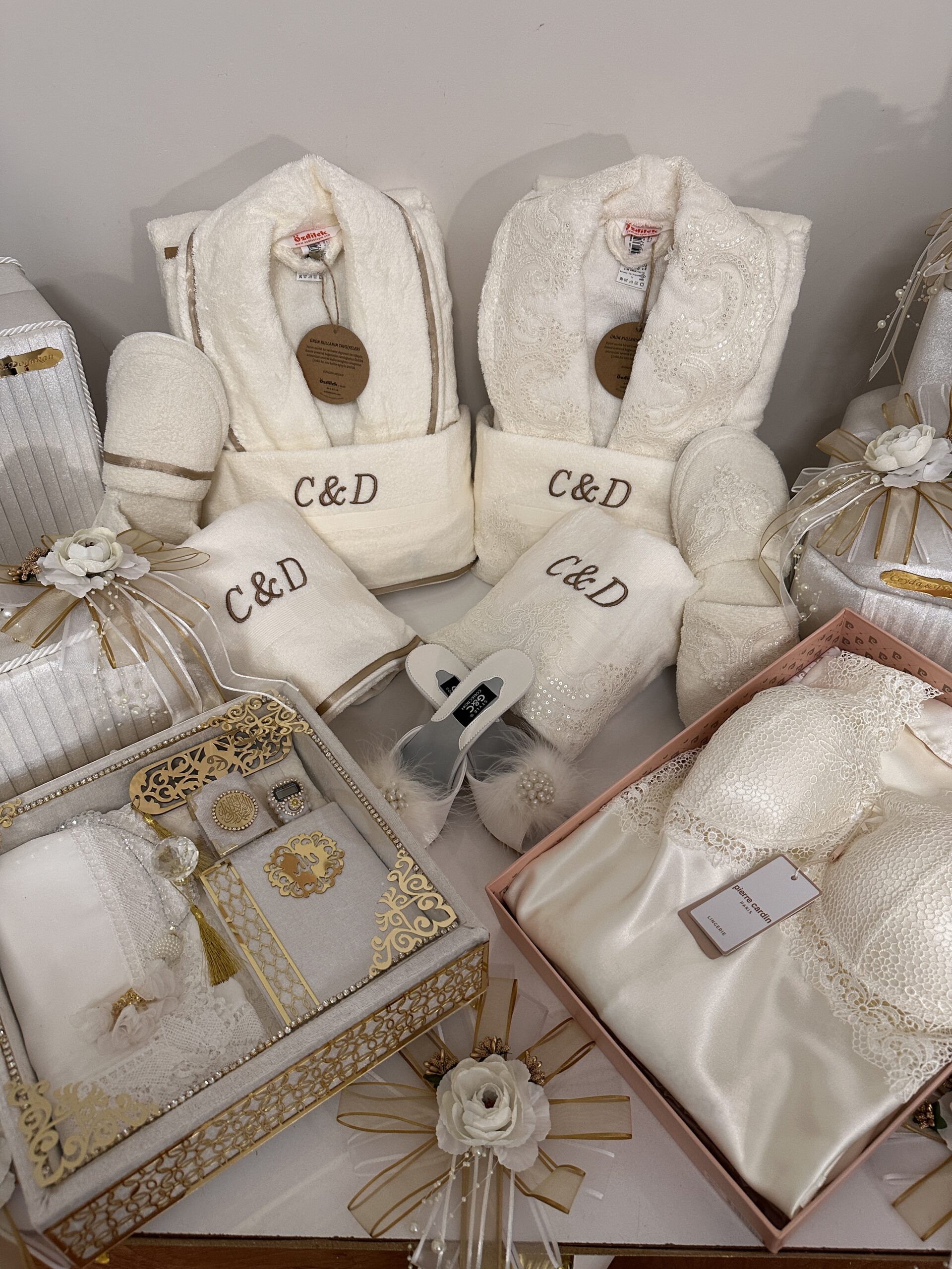 • Özdilek marka روب حمام عرايس مجموعة / بكج 8 قطع فخمة