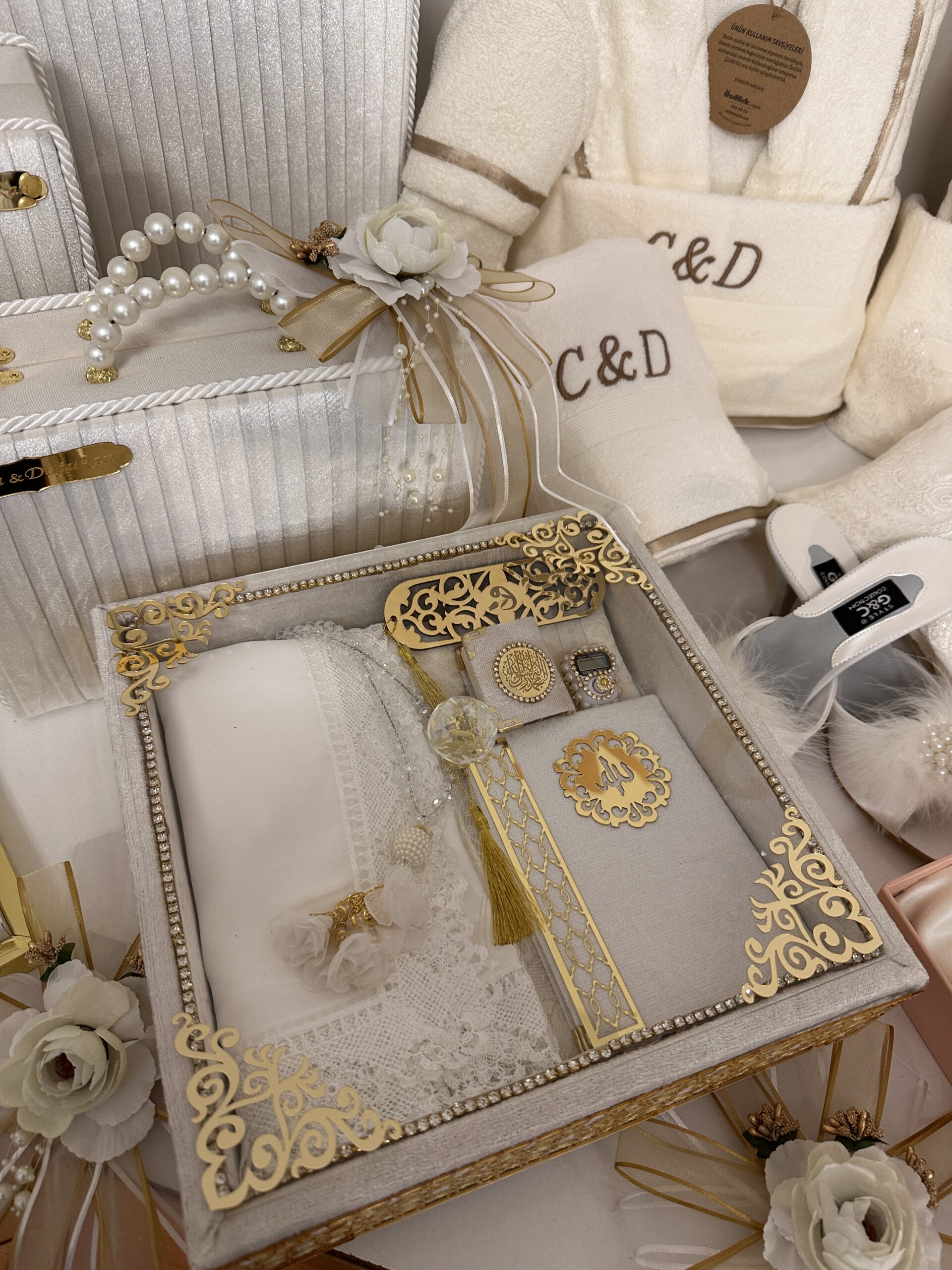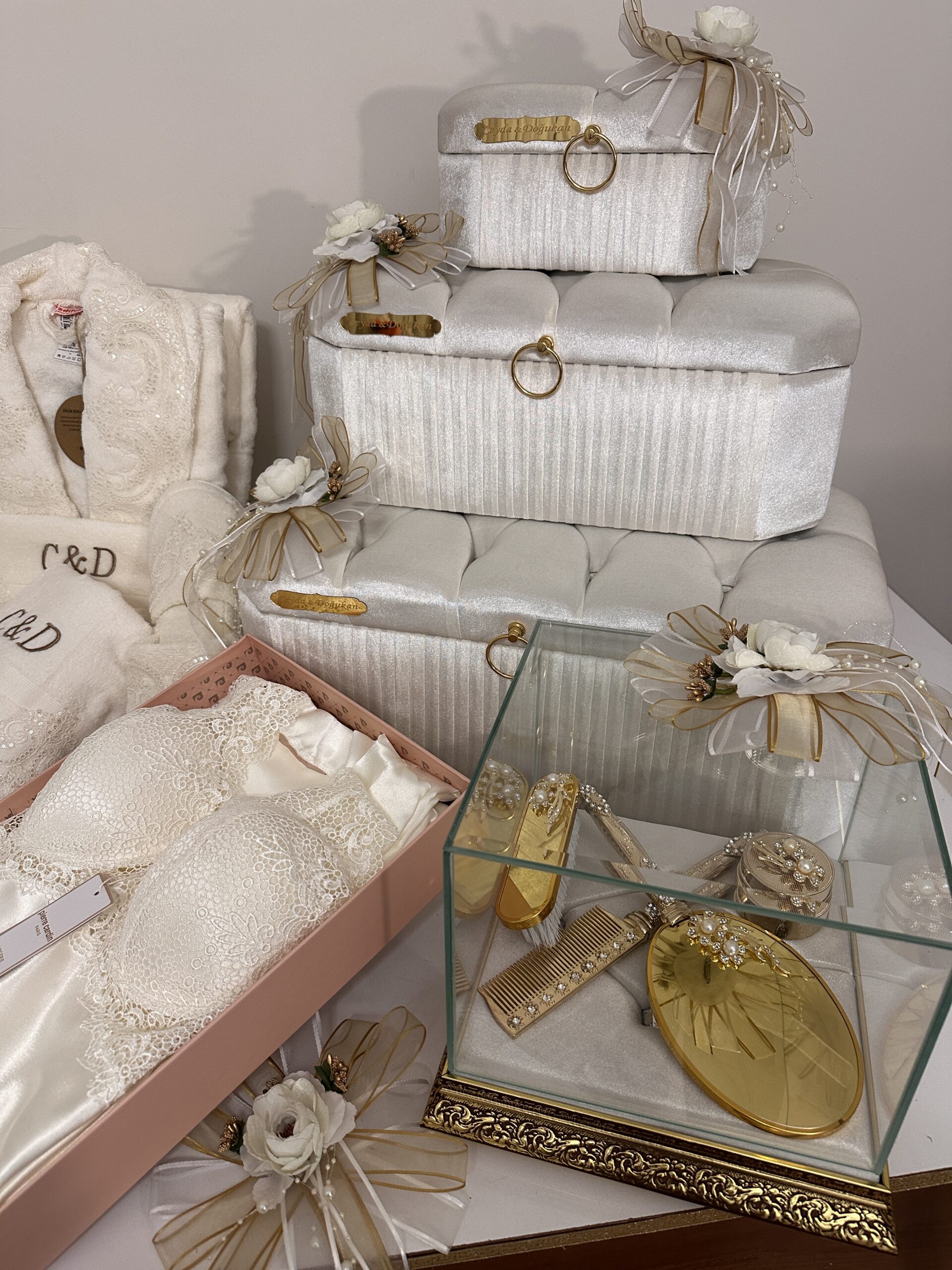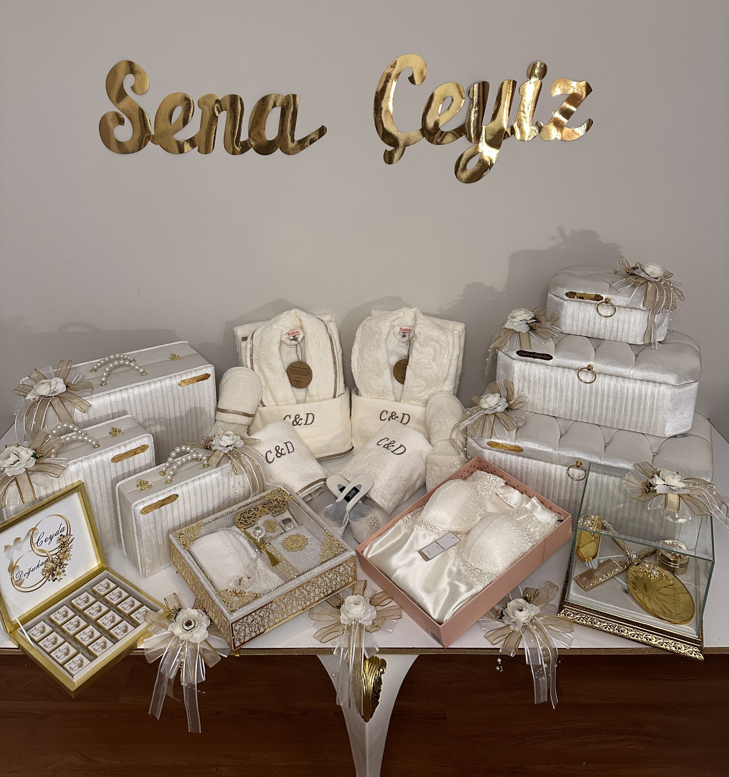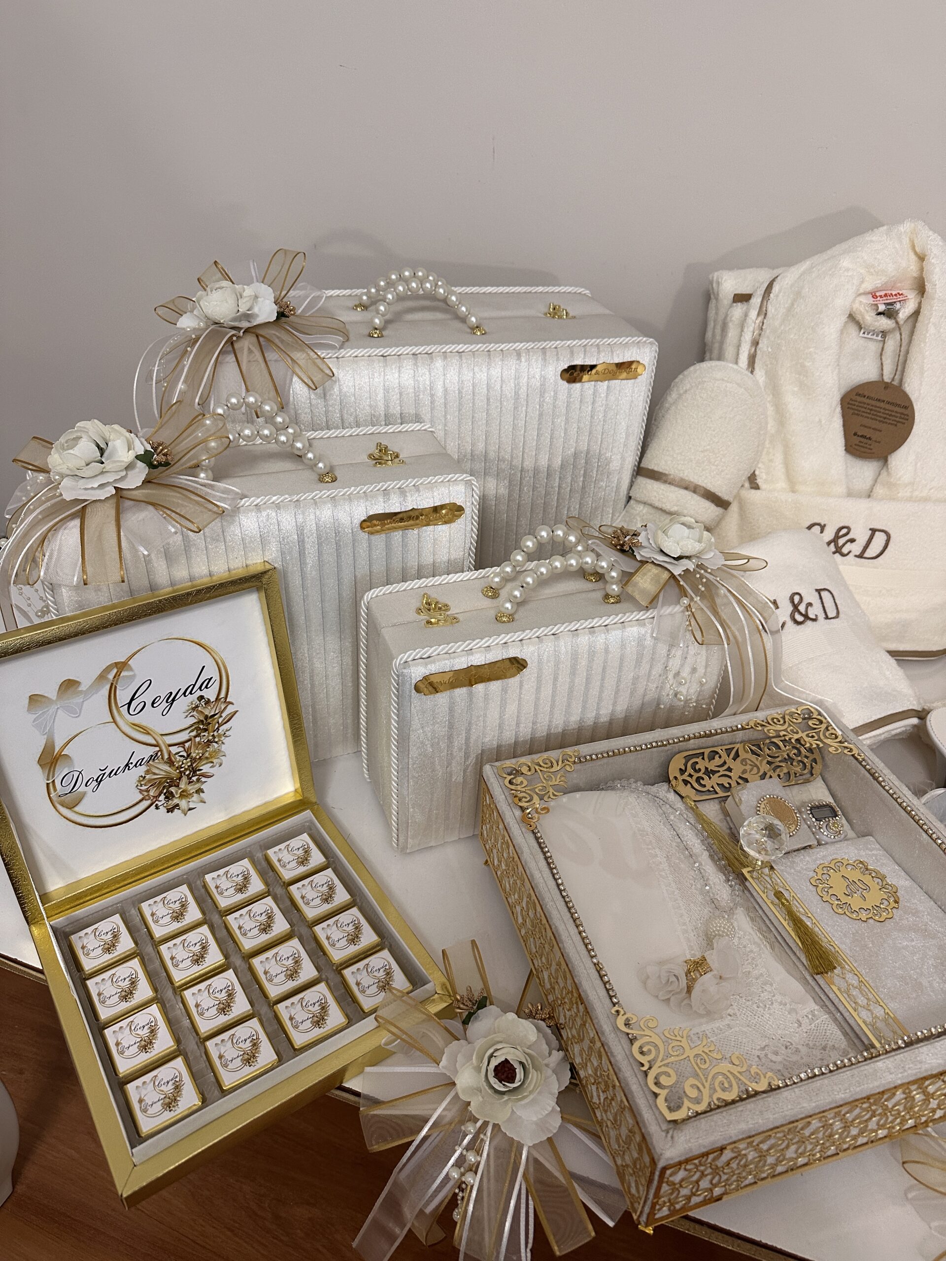 • Özdilek marka روب حمام عرايس مجموعة / بكج 8 قطع فخمة