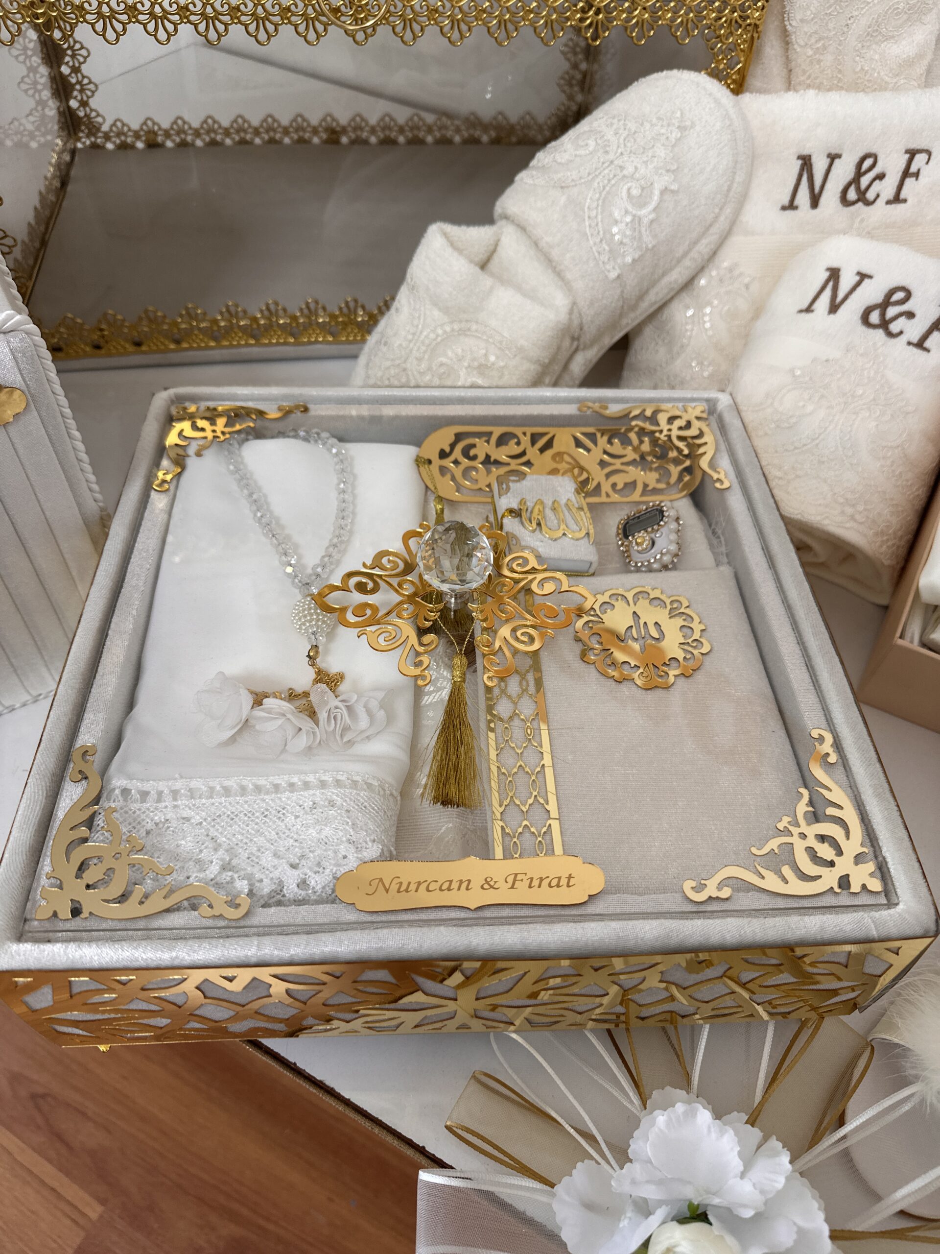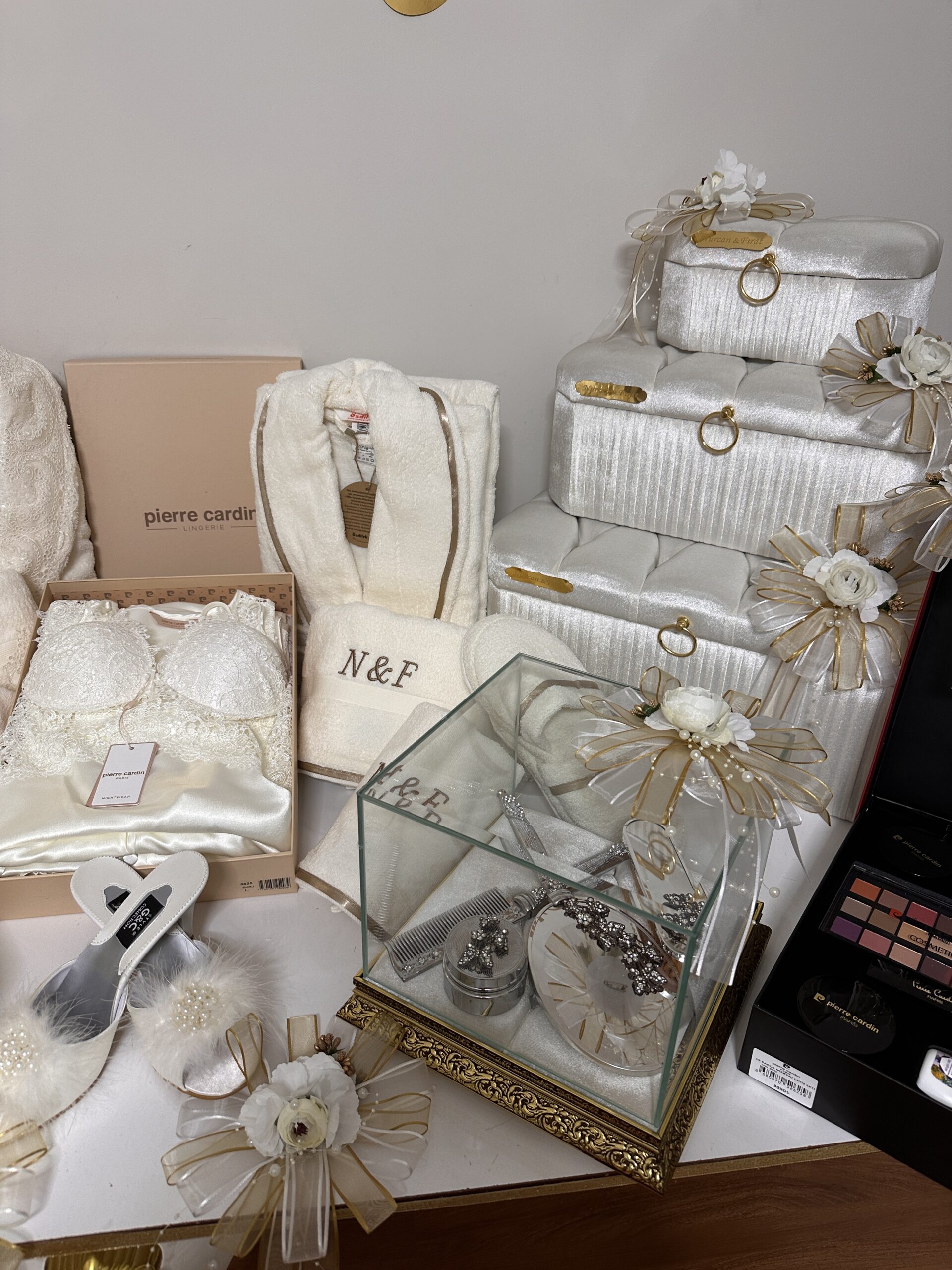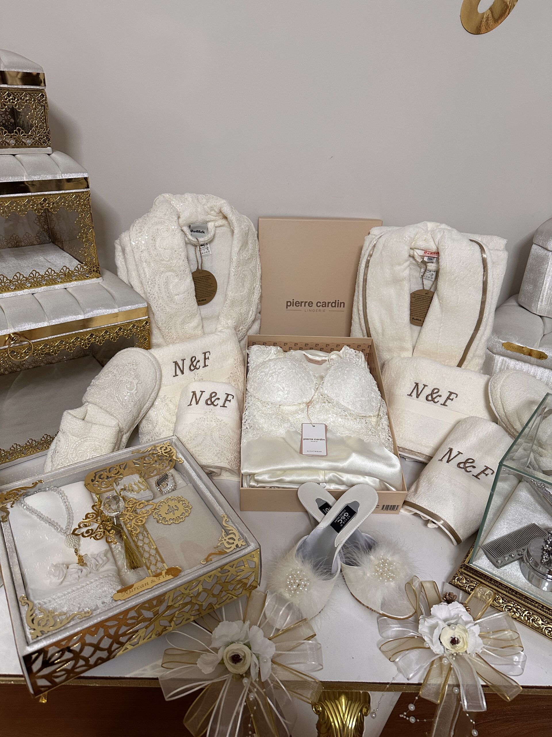 • Özdilek marka روب حمام عرايس مجموعة / بكج 8 قطع فخمة