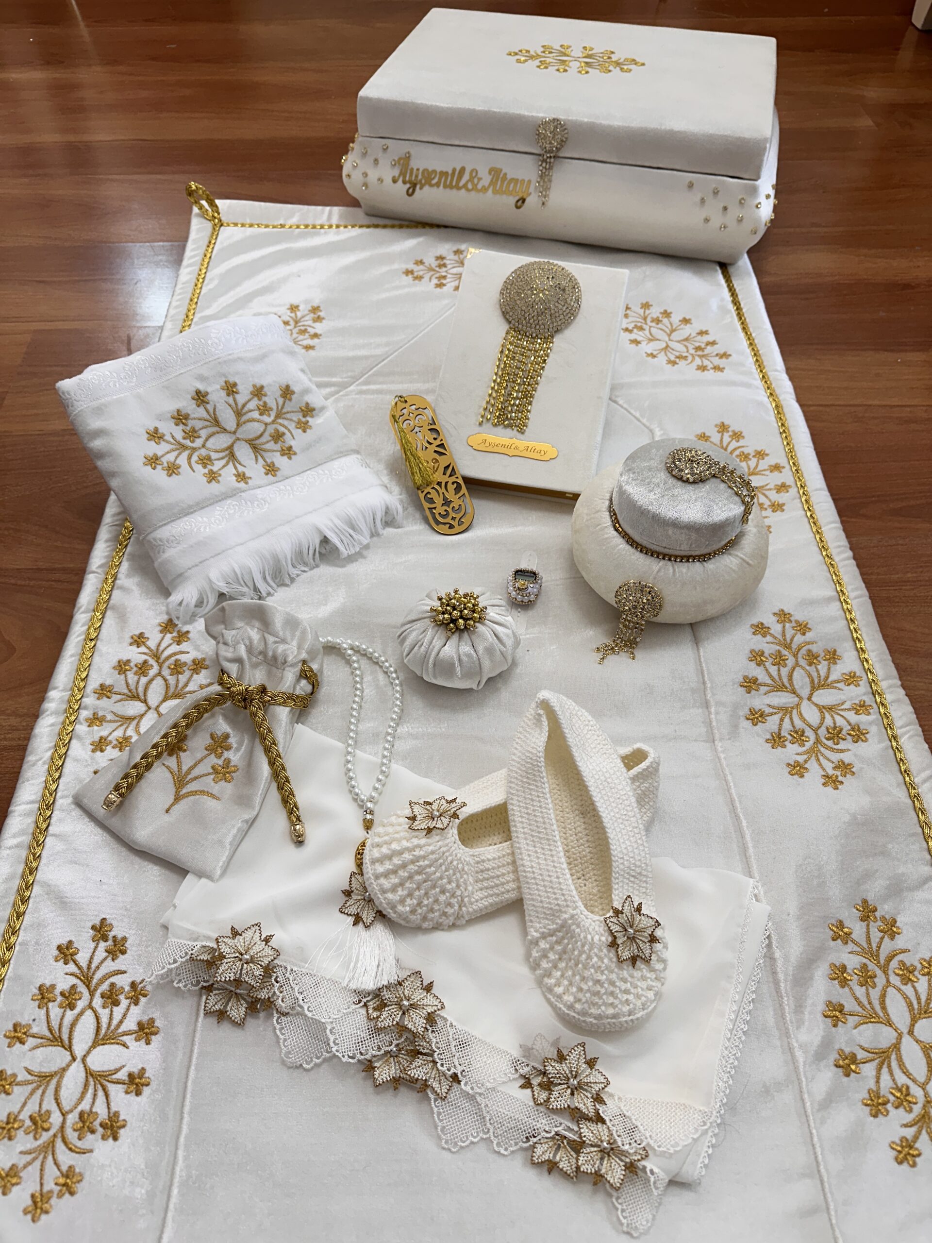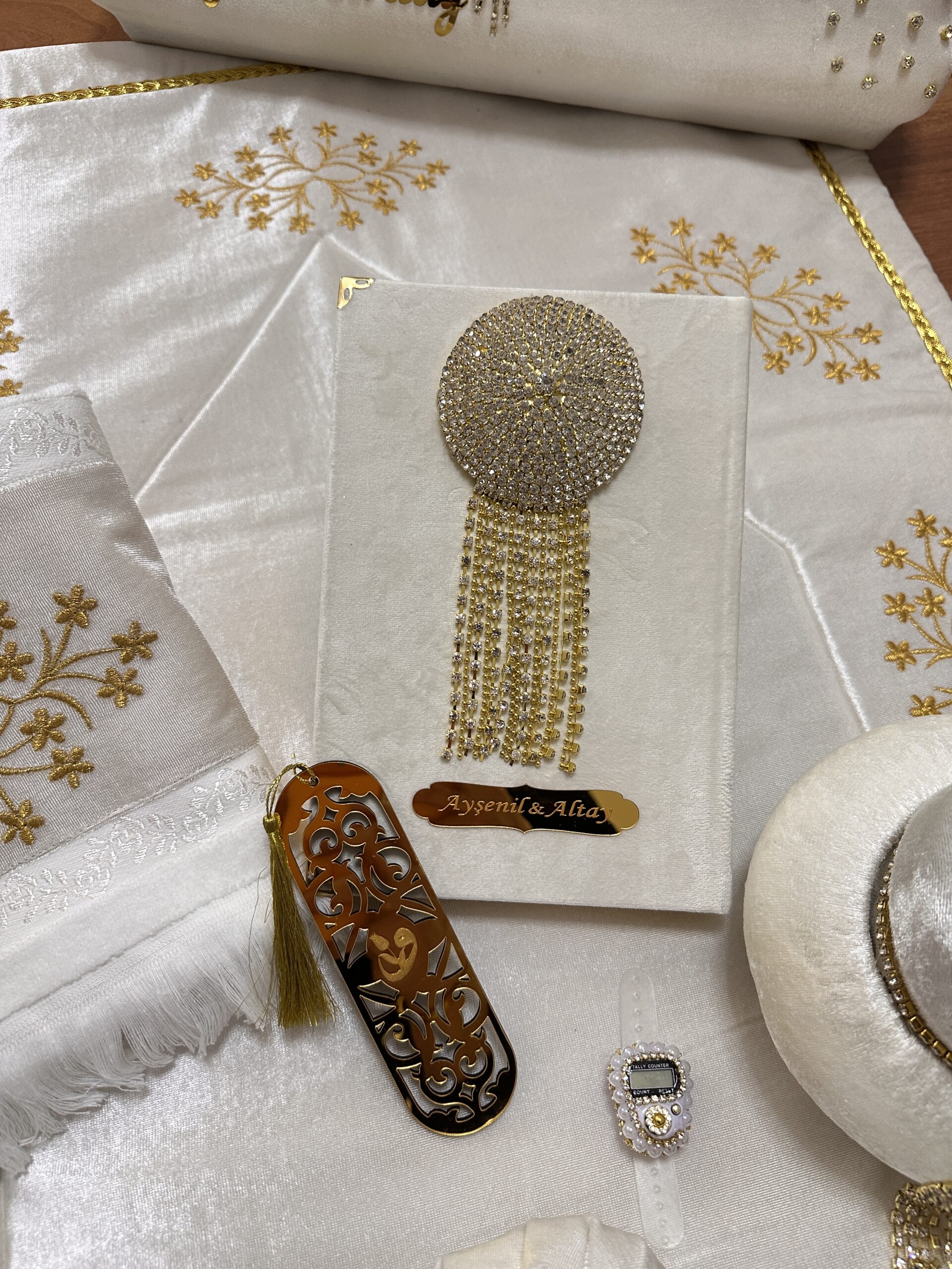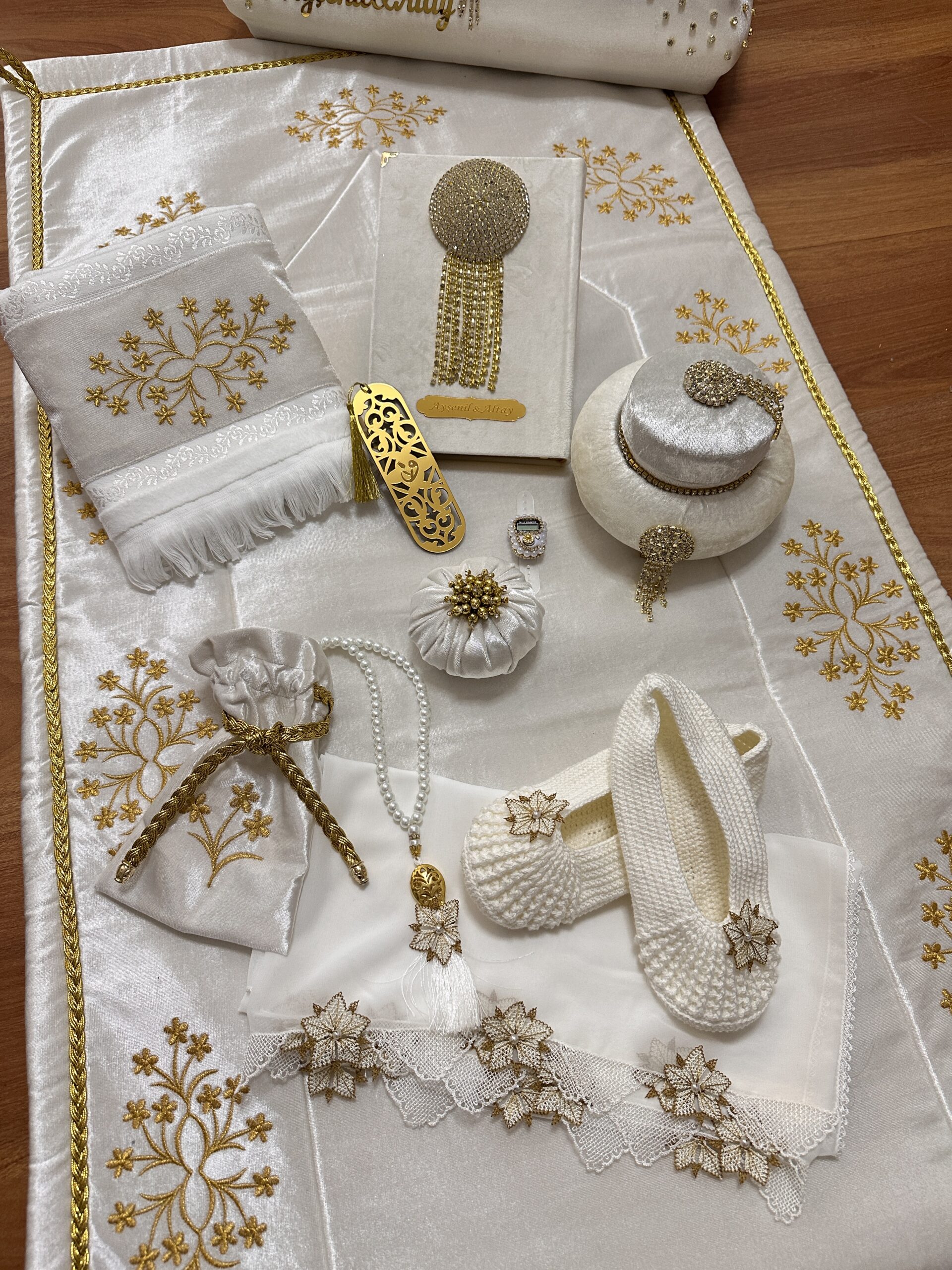 • *مطرز يدوياً حرير طبيعي مخمل فاخر سجادة صلاة مبطنة