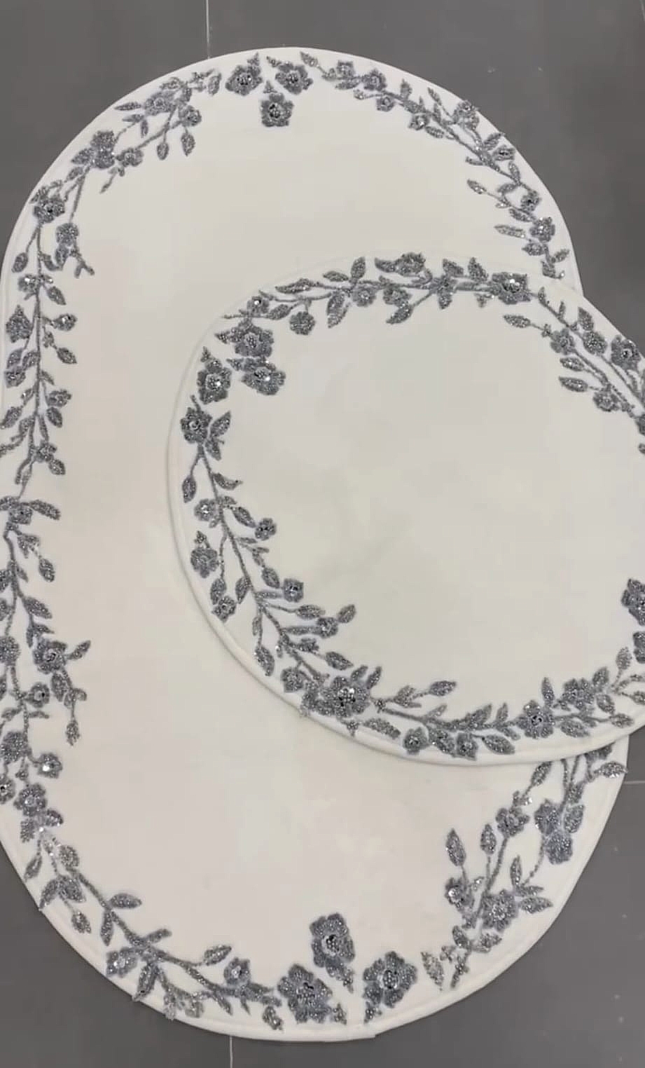 • Banyo دعاسة حمام طقم قطعتين فخمة فضي taşlı