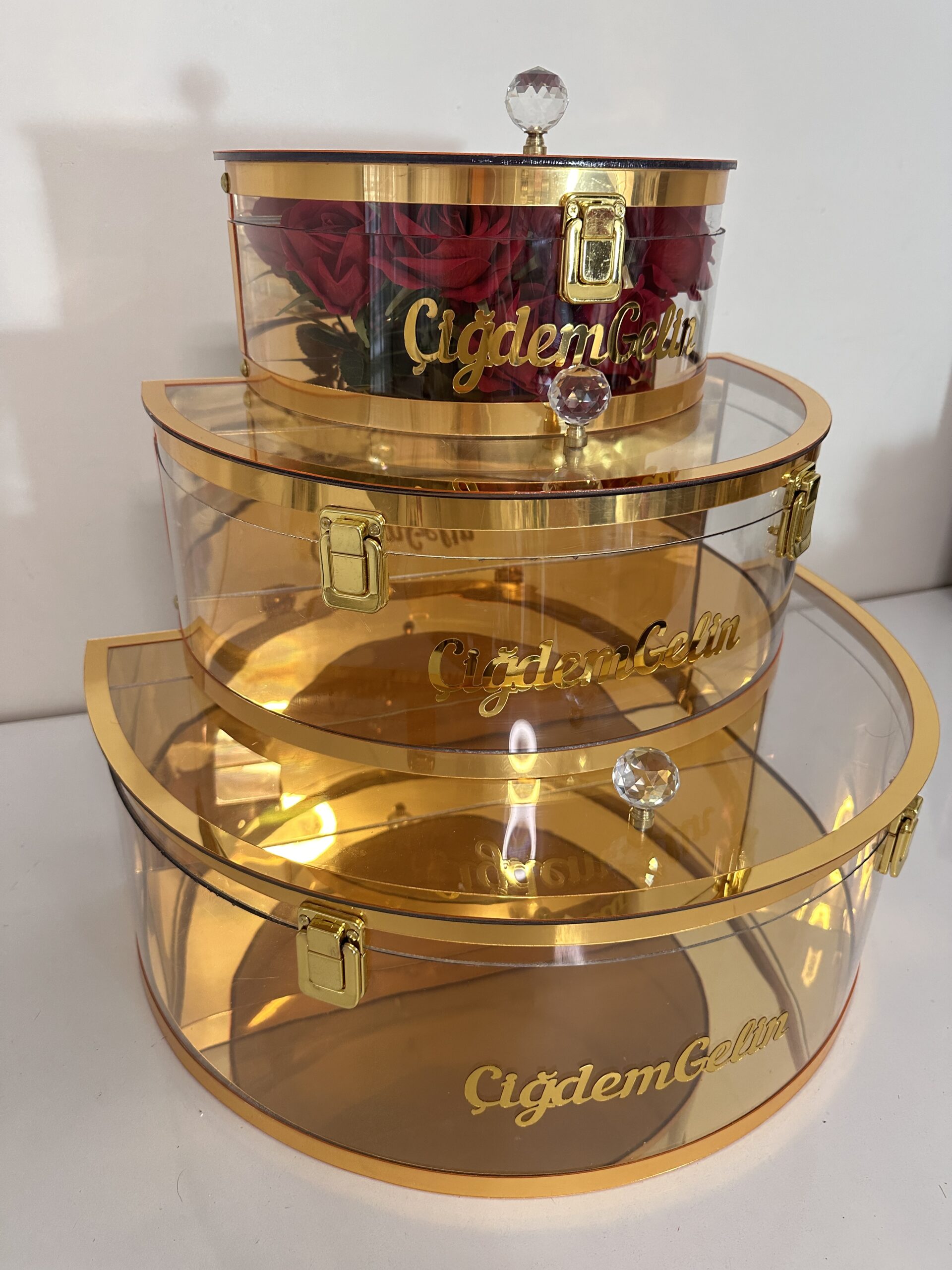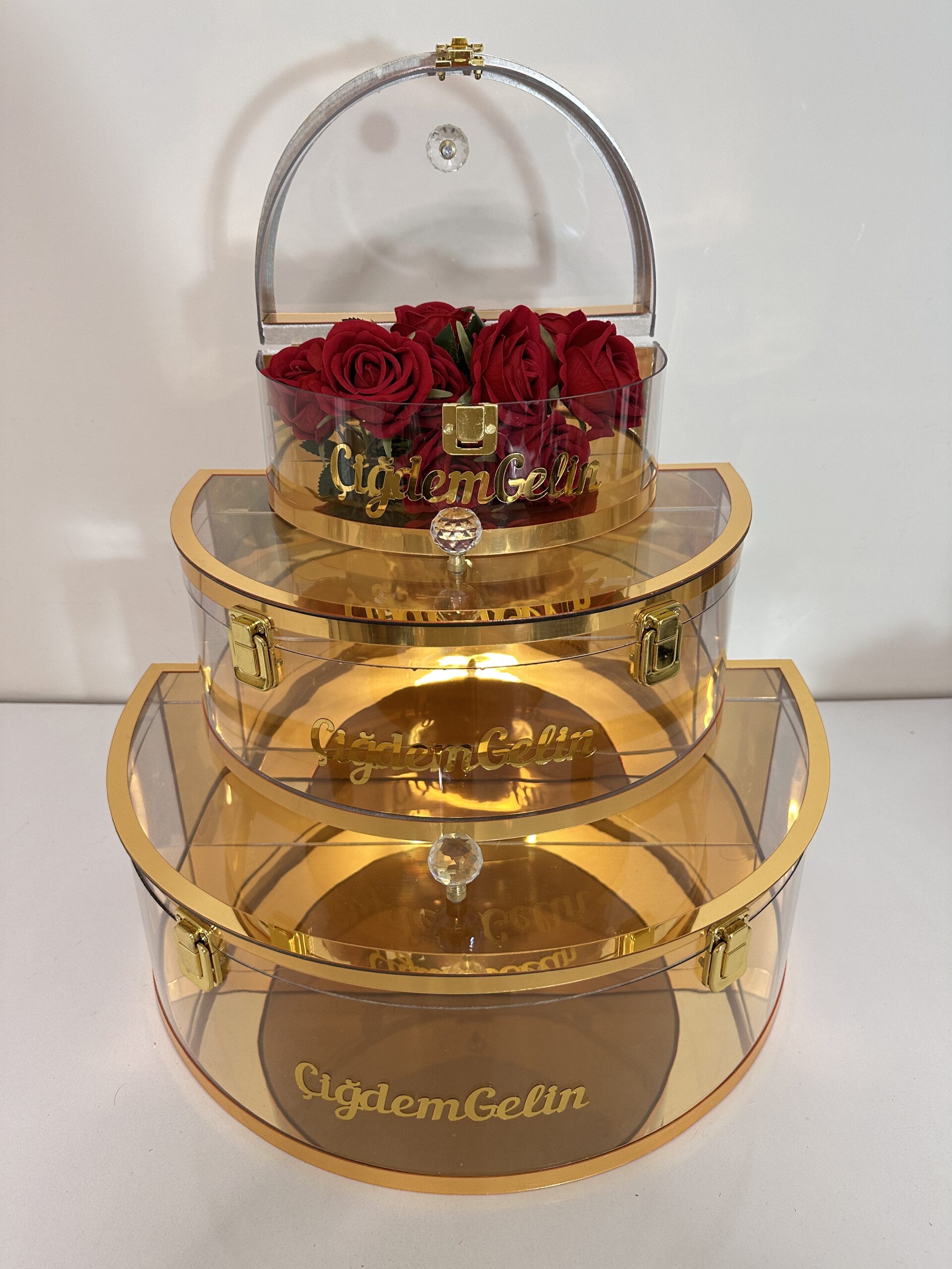 Kişiye Özel İSimli اكريليك فخم صندوق ملكي طقم | هدايا ملكة وعرايس فخمة – متجر سعودي